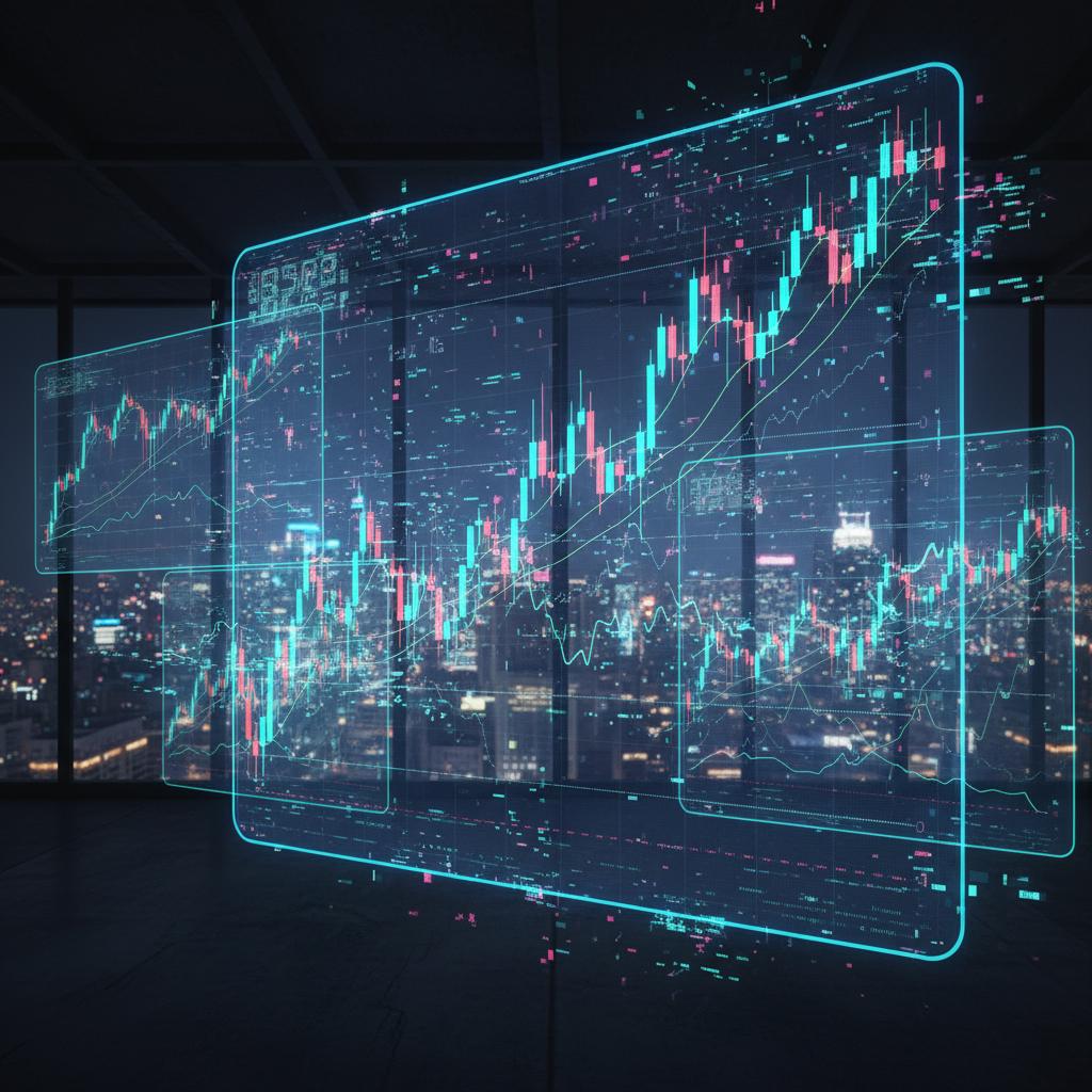 Photo of stock market graphs distorted by digital interference, visualizing AI-generated misinformation’s impact on financial markets.