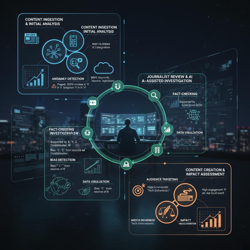- AI-driven trend analysis, surfacing underreported stories for human follow-up.