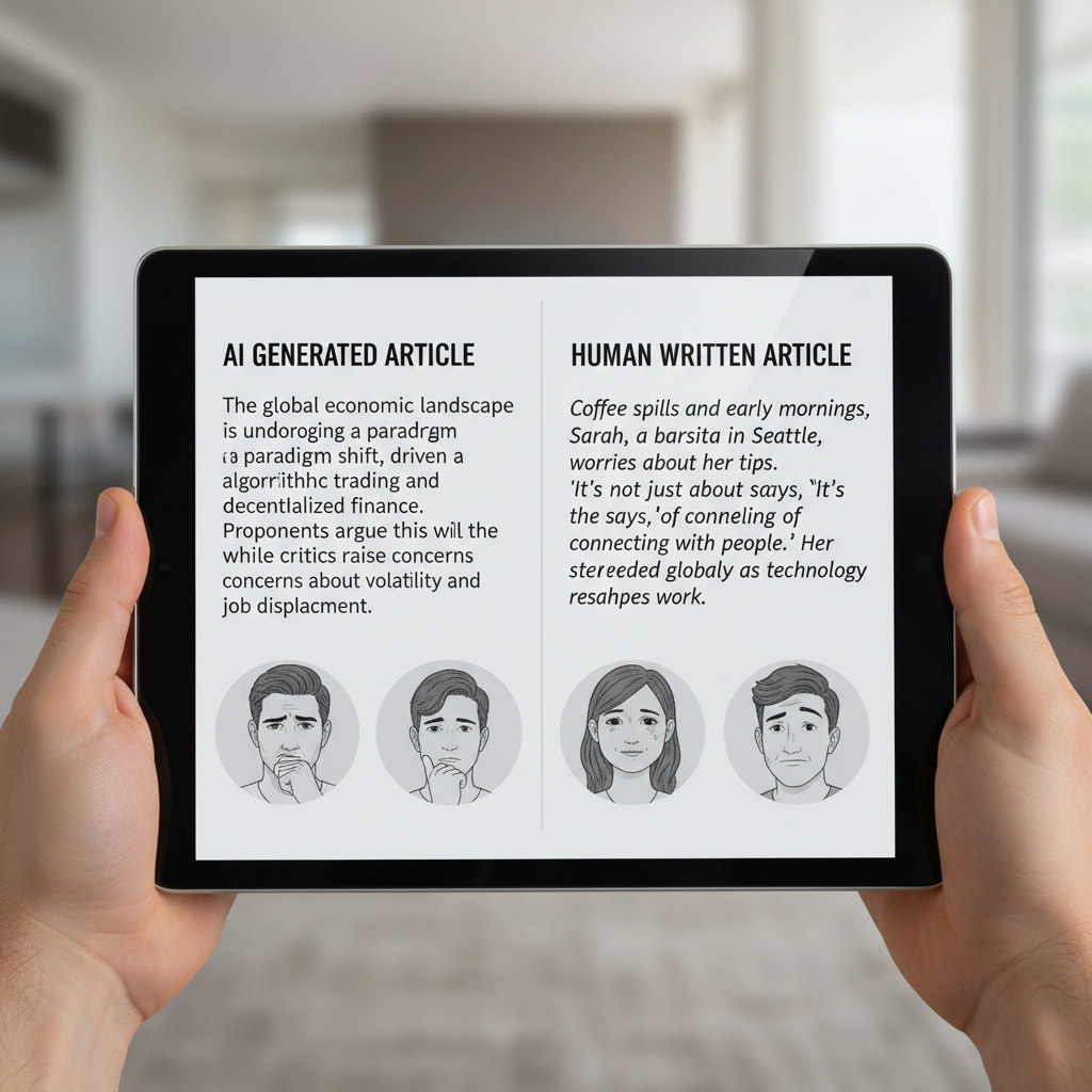 Experiments consistently reveal audiences struggle to distinguish AI from human content, but disclosure matters deeply. Three studies from 2023-24 found: