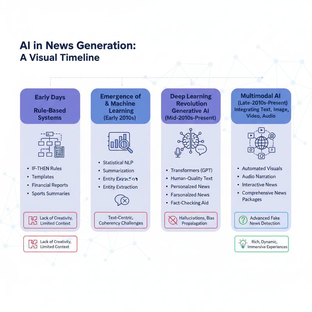 - 2023-2024: Multimodal AI systems integrate images, video, and voice for immersive news delivery.