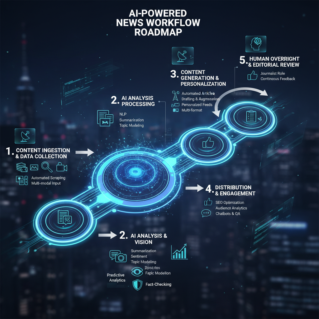 - AI as collaborator: Human journalists work with AI for faster, more accurate reporting.