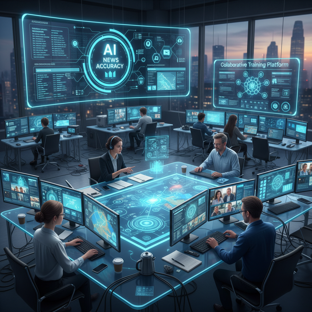 Photo: Tense newsroom scene with AI-powered content accuracy tools at work, reflecting the urgency of 2025’s news cycle and the critical role of technology in journalism integrity.