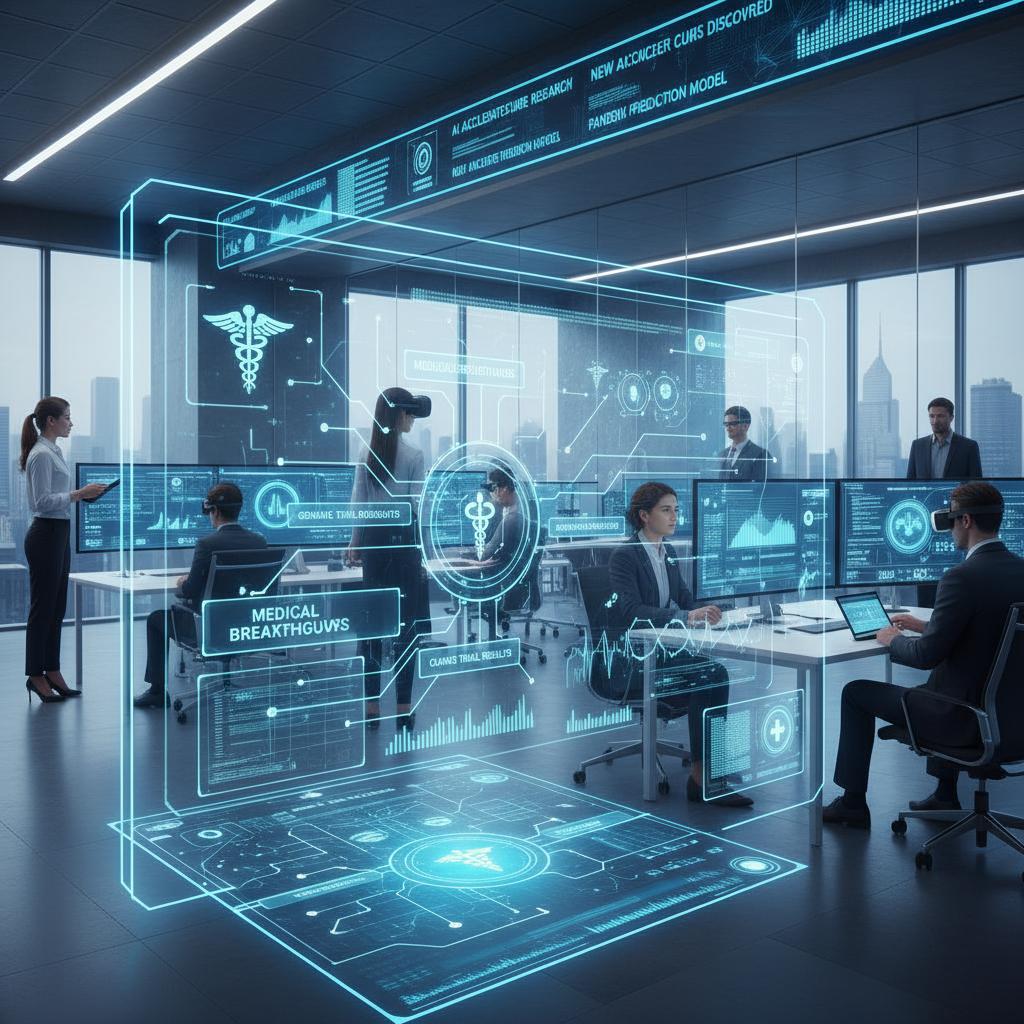 Alt: Emergency command center with live medical news feeds, intense atmosphere